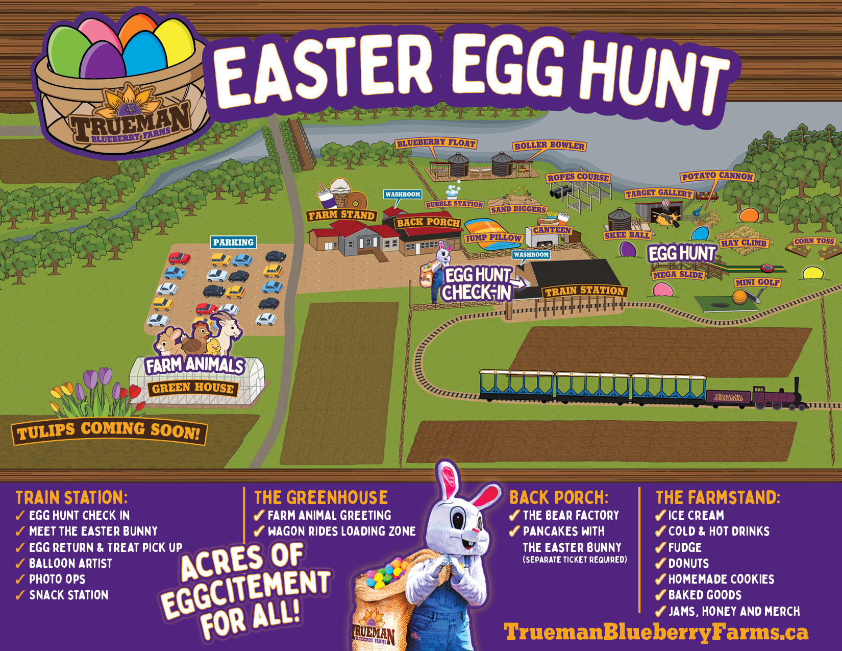 Come celebrate Easter at the farm. Join us for an unforgettable outdoor egg hunt and meet the Easter Bunny. Farm Animals, Wagon Rides, Balloons oh my!